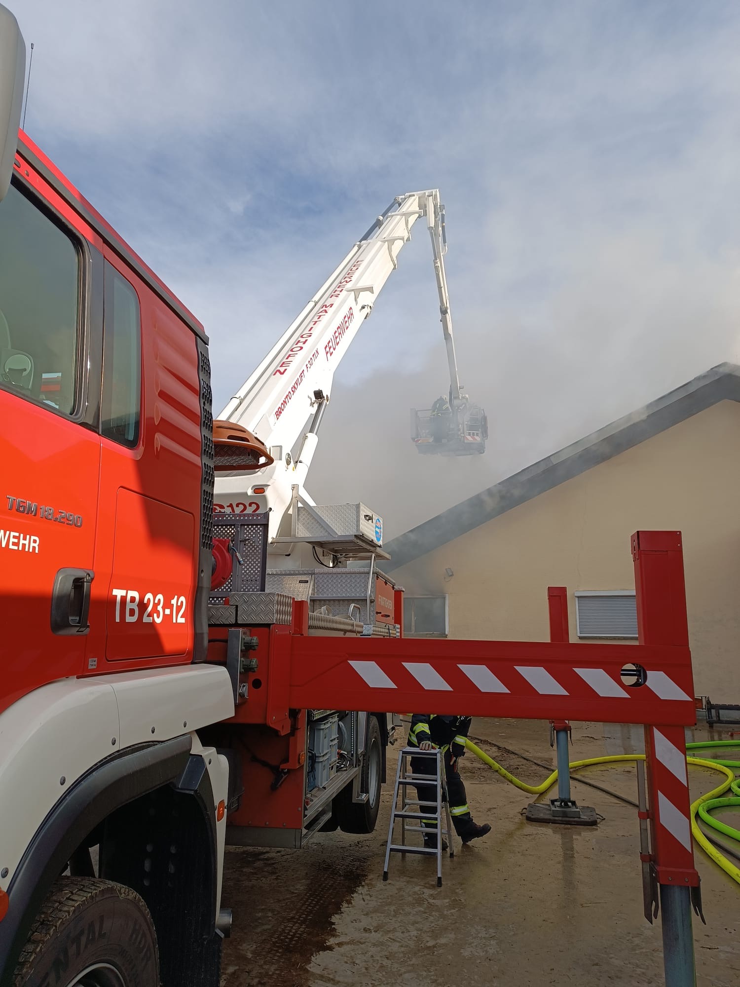Am 18.11.25 wurde unsere Hubsteigergruppe um 10:47 Uhr zu einem Brand eines landwirtschaftlichen Objektes in den Pflichtbereich der FF Feldkirchen alarmiert.
